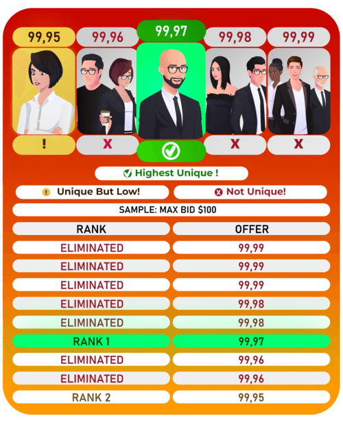 What we mean is that if more than one person bids exactly the same offer, their bids will be void and will be removed from the auction. Only the first rank and unique bidder at the end of the auction will win.